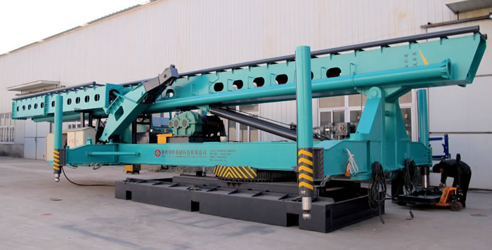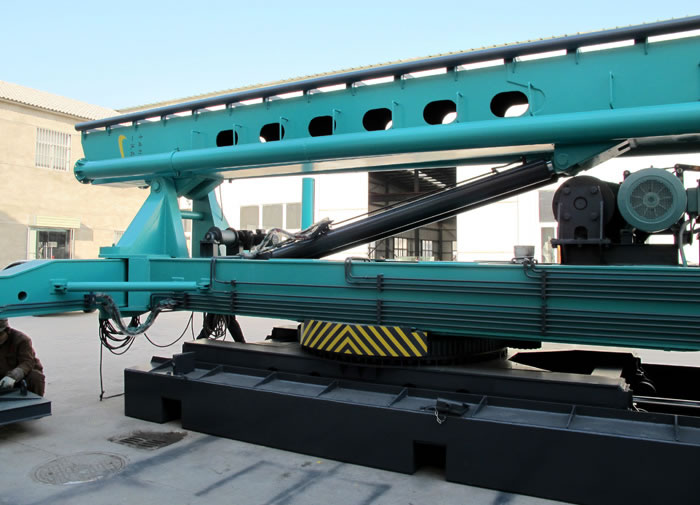 樁機(jī)主架采用折疊式,使臂架的收放更加便捷、高效,避免上節(jié)滑道的二次安裝,同時(shí),上下兩節(jié)間采用了法蘭式剛性聯(lián)接,使得臂架在使用過(guò)程中更加穩(wěn)定,使樁機(jī)在施工中不再出現(xiàn)臂架晃動(dòng)的現(xiàn)象。
